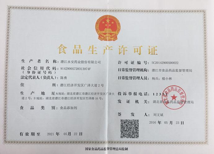 潛江永安藥業(yè)股份有限公司成立于2001年,坐落于江漢平原腹地潛江市國家高新技術(shù)產(chǎn)業(yè)開發(fā)區(qū),占地500余畝,注冊(cè)資金貳億玖仟肆佰陸拾捌萬貳仟伍佰元整,是一家擁有自主知識(shí)產(chǎn)權(quán)的國家高新技術(shù)企業(yè)。公司股票于2010年3 月5日在深圳證券交易所掛牌上市(股票代碼為002365)。公司具有雄厚的技術(shù)開發(fā)能力,是湖北省創(chuàng)新型企業(yè)和湖北省知識(shí)產(chǎn)權(quán)建設(shè)示范企業(yè)。公司研發(fā)平臺(tái)分別被認(rèn)定為省級(jí)企業(yè)技術(shù)中心和湖北省功能性食品添加劑工程技術(shù)研究中心。 經(jīng)過多年的發(fā)展,公司形成了以食品及藥品添加劑牛磺